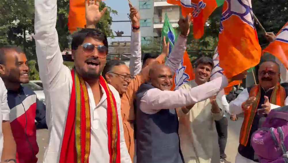 बिहार विधानसभा चुनाव में एनडीए को ऐतिहासिक जीत मिलते देख बीजेपी नेताओं में खुशी की लहर है. रायपुर के एकात्म परिसर में भाजपा नेताओं ने पटाखे फोड़ने के साथ ढोल-नगाड़ों के साथ डांस कर जश्न मनाया.