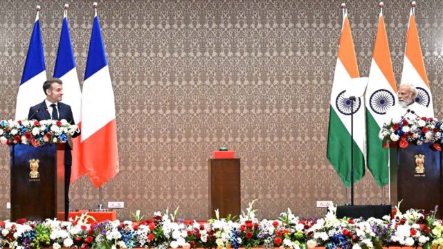 भारत ने गुरुवार को फ्रांस से राफेल फाइटर जेट खरीदने की मंजूरी दे दी, जो मैक्रों के देश दौरे से पहले उसके सबसे बड़े एयरक्राफ्ट ऑर्डर में से एक है. यह मंजूरी नई दिल्ली के 3.6 ट्रिलियन रुपये के डिफेंस खर्च पैकेज का हिस्सा थी.